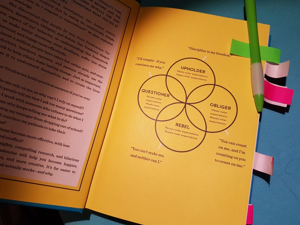 En dan is er nog gewoon het feit dat haar theorie klikt, het is logisch, het past en met je gezonde verstand weet je gewoon dat het een hele nuttige zienswijze is. Zoals Rubin zelf zegt; het is niet haar doel om mensen te definiëren of in hokjes te plaatsen. Ze wil slechts een startpunt voor zelfkennis geven. En zelfkennis is cruciaal zegt Rubin. In plaats van te wensen dat we anders waren en ons voortdurend proberen te voegen naar een mal die ons niet past, kunnen we juist de kennis van onze natuur, interesses en waarden in ons voordeel inzetten. Hoe krijg ik mezelf – en anderen! – zover dat ze doe wat ik wil? Maak gebruik van de Four Tendencies en je hebt in ieder geval een begin.